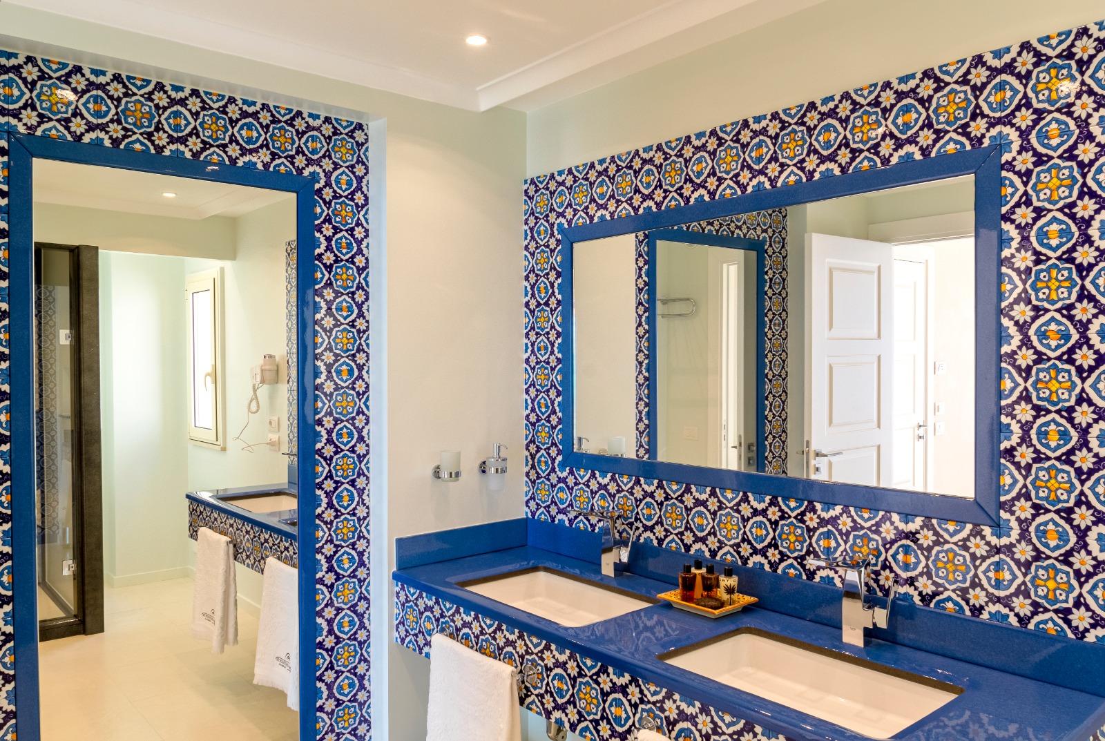 Nei nostri appartamenti, scoprirete un bagno impeccabile per ogni camera, progettato con la massima attenzione ai dettagli. Mettiamo a vostra disposizione una vasta selezione di asciugamani, teli e accappatoi di nostra fornitura, oltre a una serie di comodi accessori. I nostri bagni sono decorati con splendide ceramiche tipiche della Sicilia, che vi daranno il benvenuto insieme a altre decorazioni uniche nel loro genere.